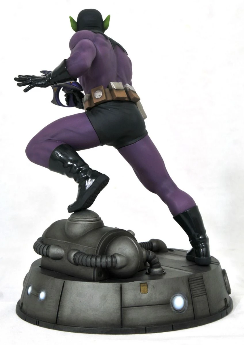 Ein Skrull, eine der fiesesten Rassen des Marvel-Universums, als Gallery Statue von Diamond Select Toys. Eine Veröffentlichung von Diamond Select Toys! Der Feind wird in diesem brandneuen Galerie-Diorama enthüllt, das eine der heimtückischsten außerirdischen Rassen von Marvel ins Rampenlicht rückt – die Skrulls! Dieser Gestaltwandler, der einen Skrull-Krieger mit schussbereiter Waffe darstellt, steht etwa 10 Zoll groß auf einem architektonischen Sockel. Es ist aus hochwertigem PVC gefertigt, verfügt über detaillierte Skulpturen und Farbapplikationen und wird in einer vollfarbigen Fensterbox geliefert.