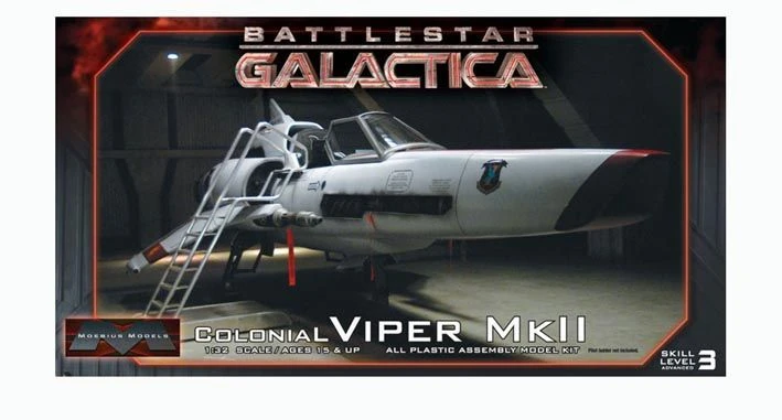 Bausatz der Battlestar Galactica Colonial Viper MK 2 im Maßstab 1:32. Größe: ca. 33cm. Der hoch-detaillierte Bausatz ist das erste Model-Kit Release des Herstellers Moebius.