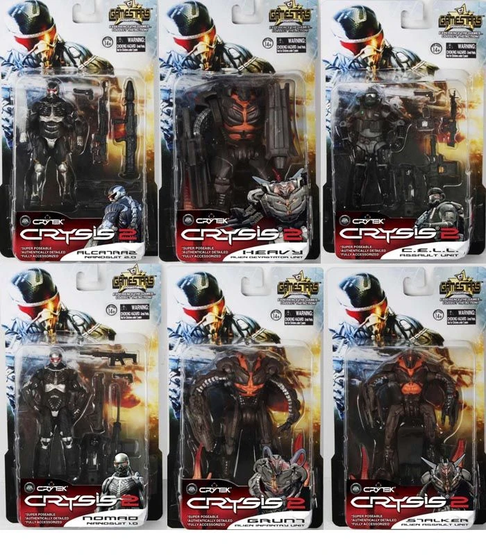 Die Crysis Figuren sind jeweils ca. 10cm groß (3,75-Inch Format) und kommen mit zusätzlichem Zubehör jeweils einzeln in Blisterkarten verpackt zu Dir nach Hause.