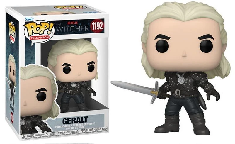 Funko POP! Figur von Geralt mit Schwert aus der Netflix Serie „The Witcher“.
