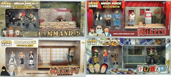 4 Micro Icons Dioramen im Set: Commandos, Bikers, Kung Fu und Punks. Auf Anfrage auch einzeln erhältlich.