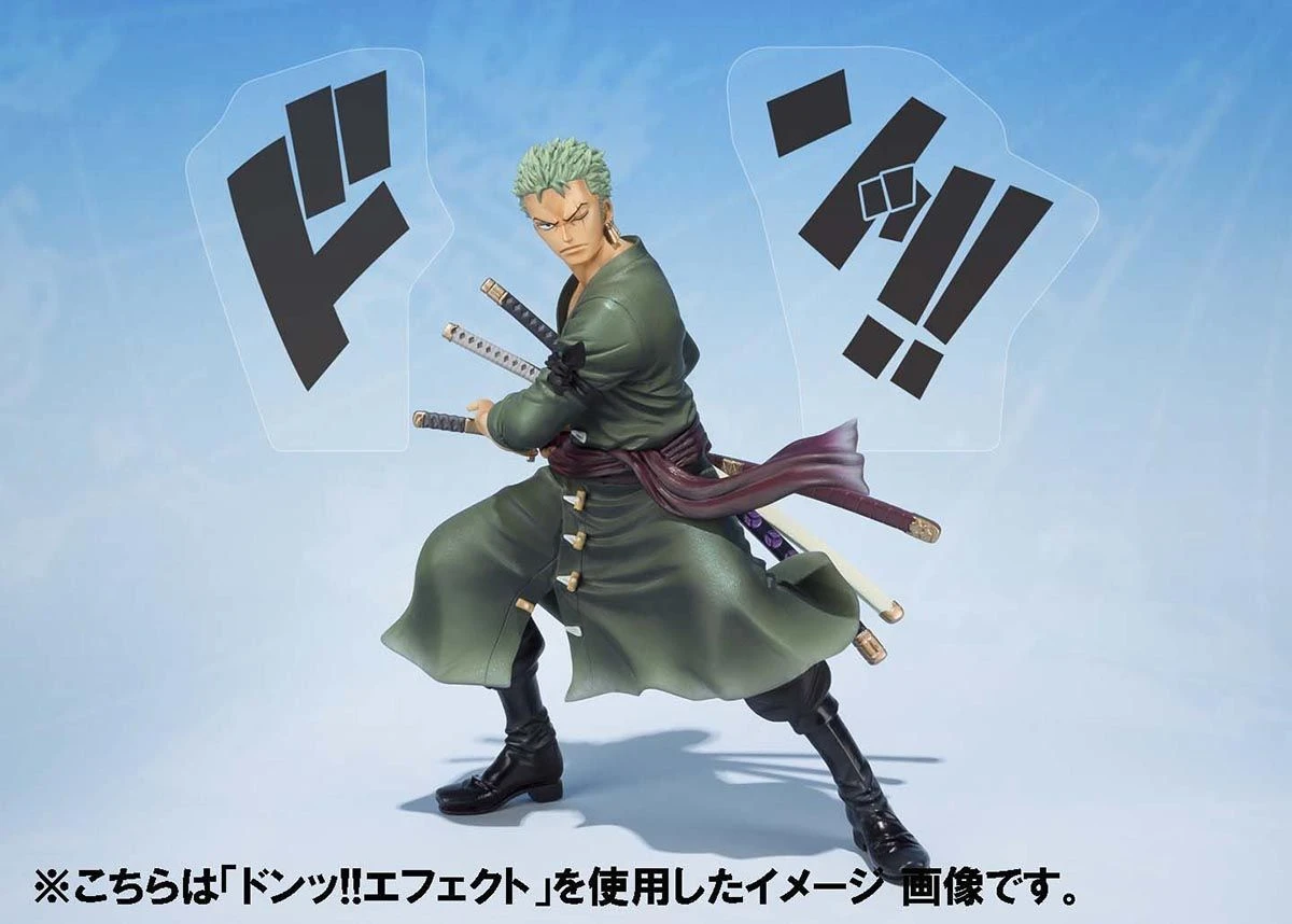 Hochwertige Sammlerfigur von Roronoa Zoro aus der Animeserie One Piece zum fünfjährigen Jubiläum der BanDai Figuarts Zero Figurenserie.