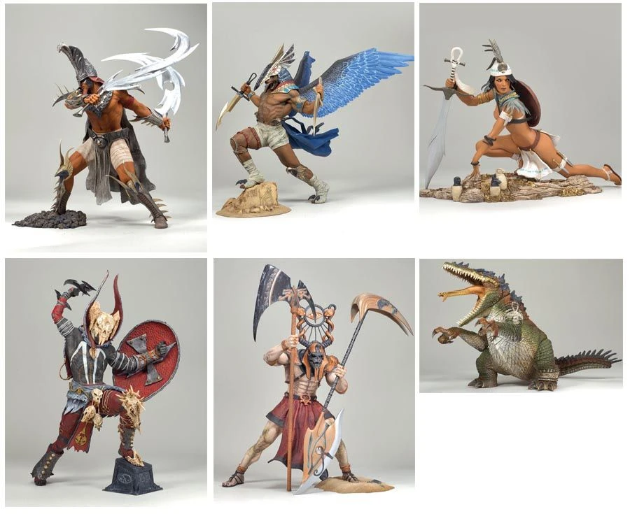 Set aus 6 Spawn Figuren: Soldier of RA, Spawn Immortal, Scarab Assasin, Crocodile King, Jackal King und Isis.