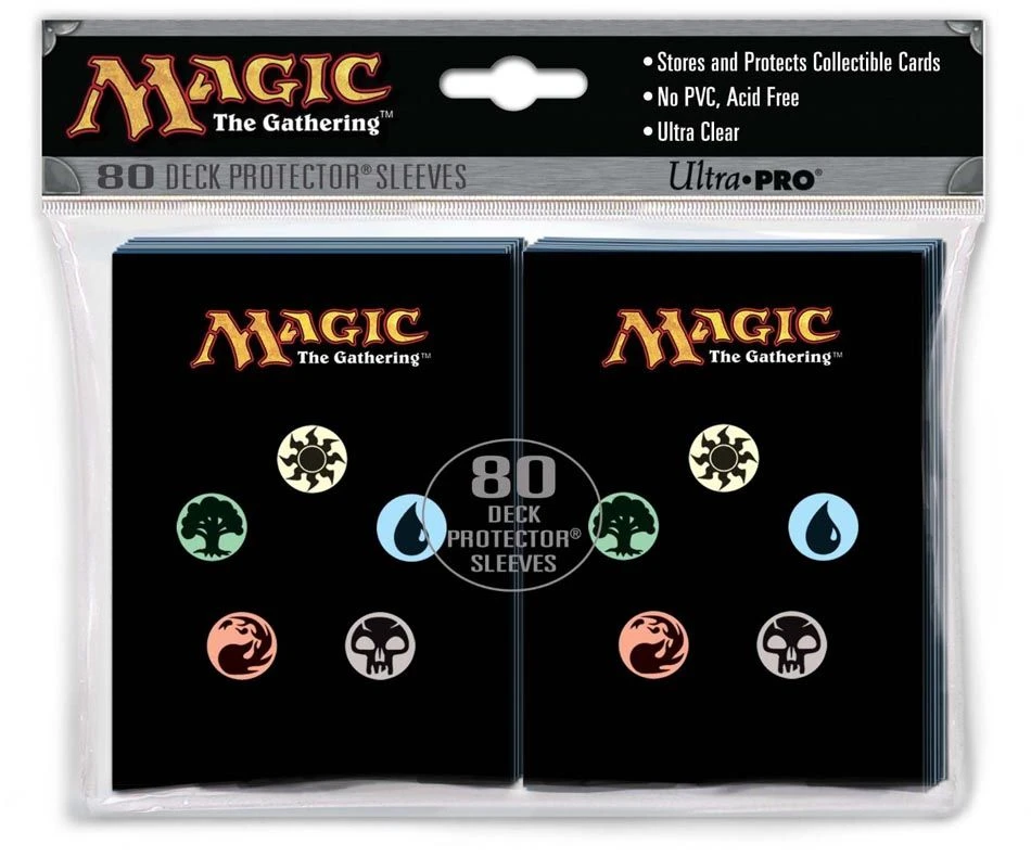 Päckchen mit 80 Ultra Pro Sleeves (Schutzhüllen) für Magic Sammelkarten. Motiv: alle Mana-Symbole