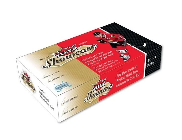 Upper Deck Hockey Box Fleer Showcase mit NHL Tradingcards zur Spielsaison 2013/14. Das versiegelte Display enthält 15 Packs a 5 Karten.